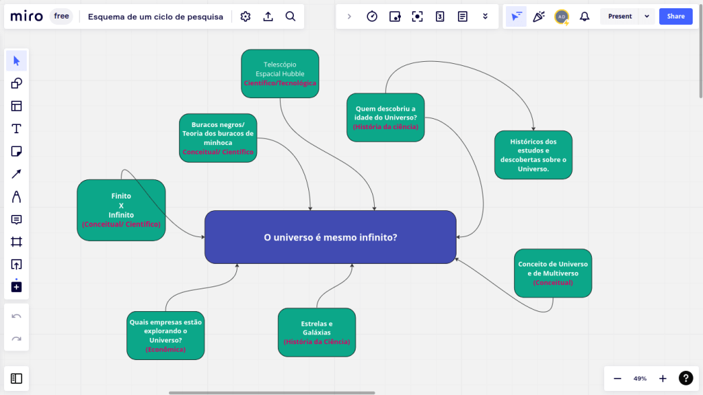 Nesta postagem divulgamos alguns mapas conceituais produzidos por estudantes do Colégio de Aplicação da UFSC (entre 2020 e 2021), quando foram convidados a produzir pesquisas livres no formato metodológico da EJA/PMF, bem como de mapas organizanados por mim mesmo (enquanto professor) visando a realização de pesquisas coletivas sobre um determinado tema amplo. Por film, divulgamos aqui também mapas conceituais de pesquisa de estudantes da própria EJA/PMF deste ano (2023).